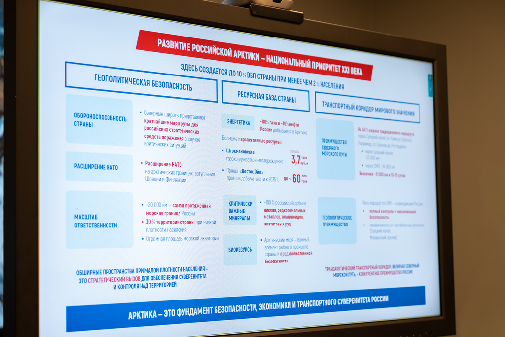 Губернатор обозначил системные проблемы, сдерживающие развитие: беспрецедентное санкционное давление, милитаризация мировой Арктики после вступления в НАТО Финляндии и Швеции, а также системное сокращение населения Российской Арктики при росте численности в зарубежной.